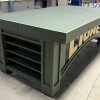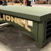 This custom table top is pine framing and drop edge topped with 1/2″ maple plywood covered with 1″ blue foam. CNC cut MDF, primed and painted. Comes with or without casters…. YOUR CHOICE!