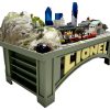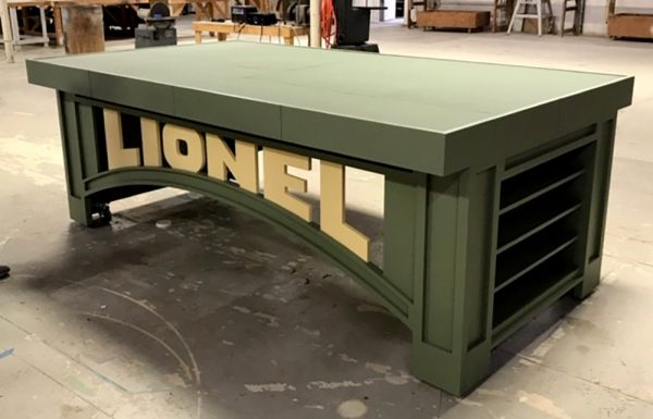 Let your RR track and scenic planning go wild for the finished top – have some fun! Get some assistance from your kids and/or grand kids. Even better… wonderful idea for a museum, train store – create an event to “finish the train table” – learn about; wiring, track laying, accessory wiring, mountain carving and scenic/landscaping application.